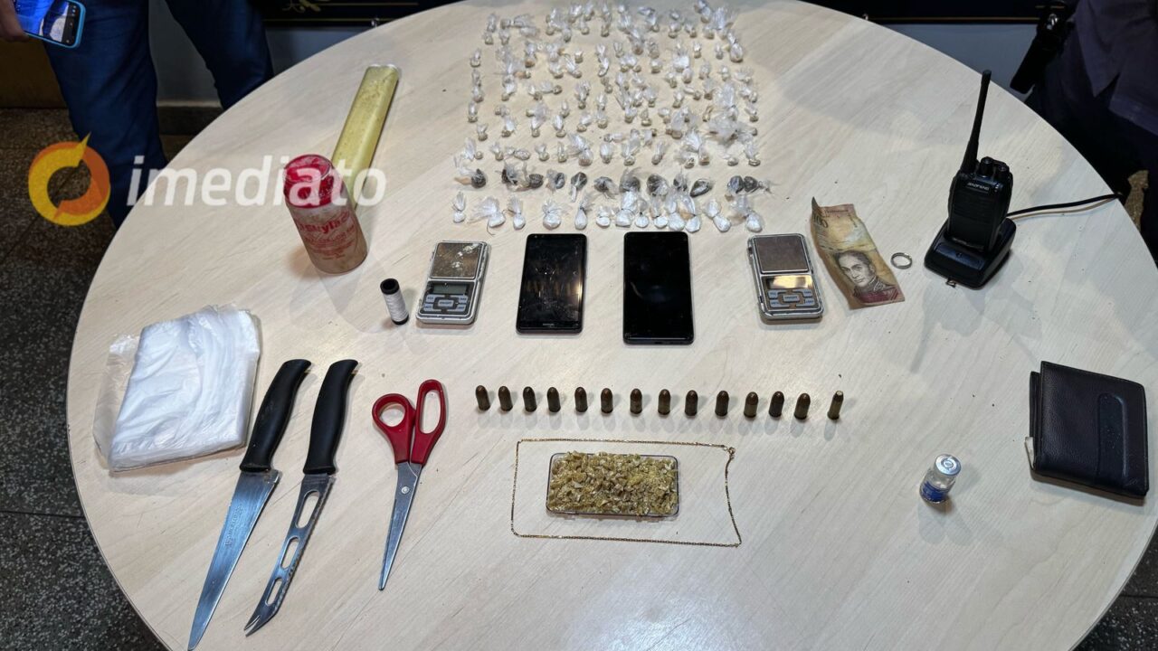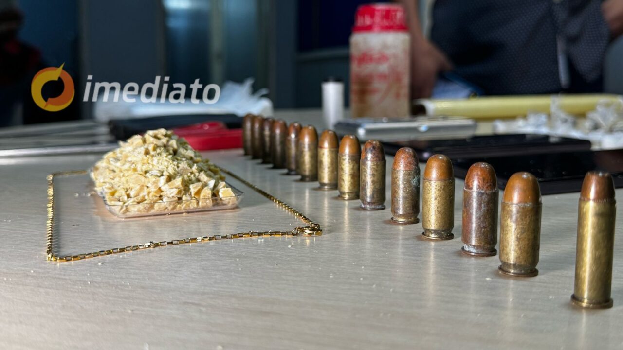 No local, os policiais apreenderam porções de oxi, maconha e cocaína, além de celulares, rádio comunicador e munições de calibres .38 e .45. O material estava preparado para comercialização. A presença do rádio indica que os criminosos monitoravam a movimentação policial na região.