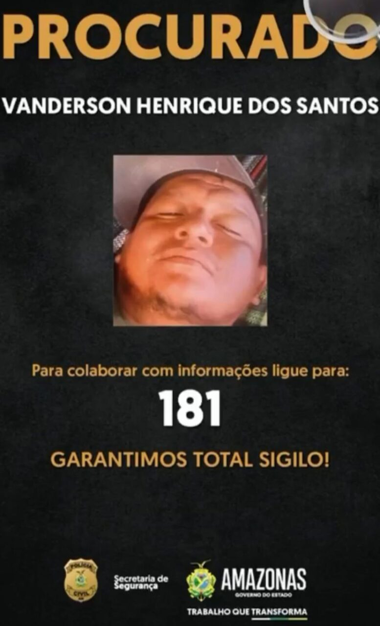 A polícia solicita a colaboração da população para localizar o suspeito. Informações sobre o paradeiro de Vanderson Henrique dos Santos podem ser repassadas de forma anônima pelo disque-denúncia 181, da Secretaria de Segurança Pública do Amazonas (SSP-AM). A identidade dos denunciantes será mantida em sigilo.