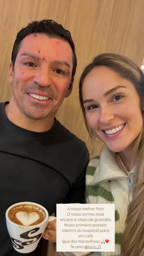 Na legenda da foto publicada por Marília Forgiarini, ela expressou gratidão: “A nossa melhor foto. O nosso sorriso mais sincero e cheio de gratidão. Nosso primeiro passeio (dentro do hospital) para um café. Que dia maravilhoso. Te amo.” A imagem, que mostra Lúcio com pequenas marcas de ferimentos no rosto, tranquilizou fãs e trouxe um tom de esperança. A família agradeceu o apoio de torcedores, amigos e ex-companheiros, como o técnico Renato Gaúcho, do Fluminense, e a CBF, que publicaram mensagens de solidariedade.