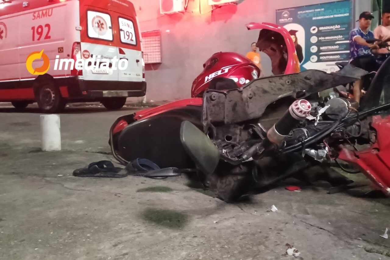 A motocicleta, de cor vermelha, ficou completamente destruída, dificultando a identificação do modelo. Imagens gravadas no local mostram a movimentação intensa dos socorristas, que imobilizaram e removeram a vítima para um hospital da capital.