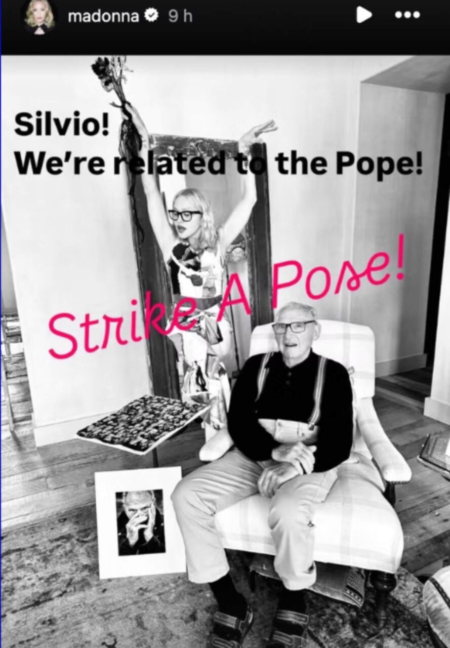 Madonna, conhecida por sua relação complexa com a Igreja Católica, não perdeu a chance de comentar a descoberta com bom humor. Em suas redes sociais, a cantora publicou uma foto ao lado de seu pai, Silvio Ciccone, de 94 anos, com a legenda: “Silvio! Somos parentes do Papa! Faça uma pose!” A postagem, compartilhada no Instagram Stories e no X, viralizou rapidamente, gerando milhares de reações.