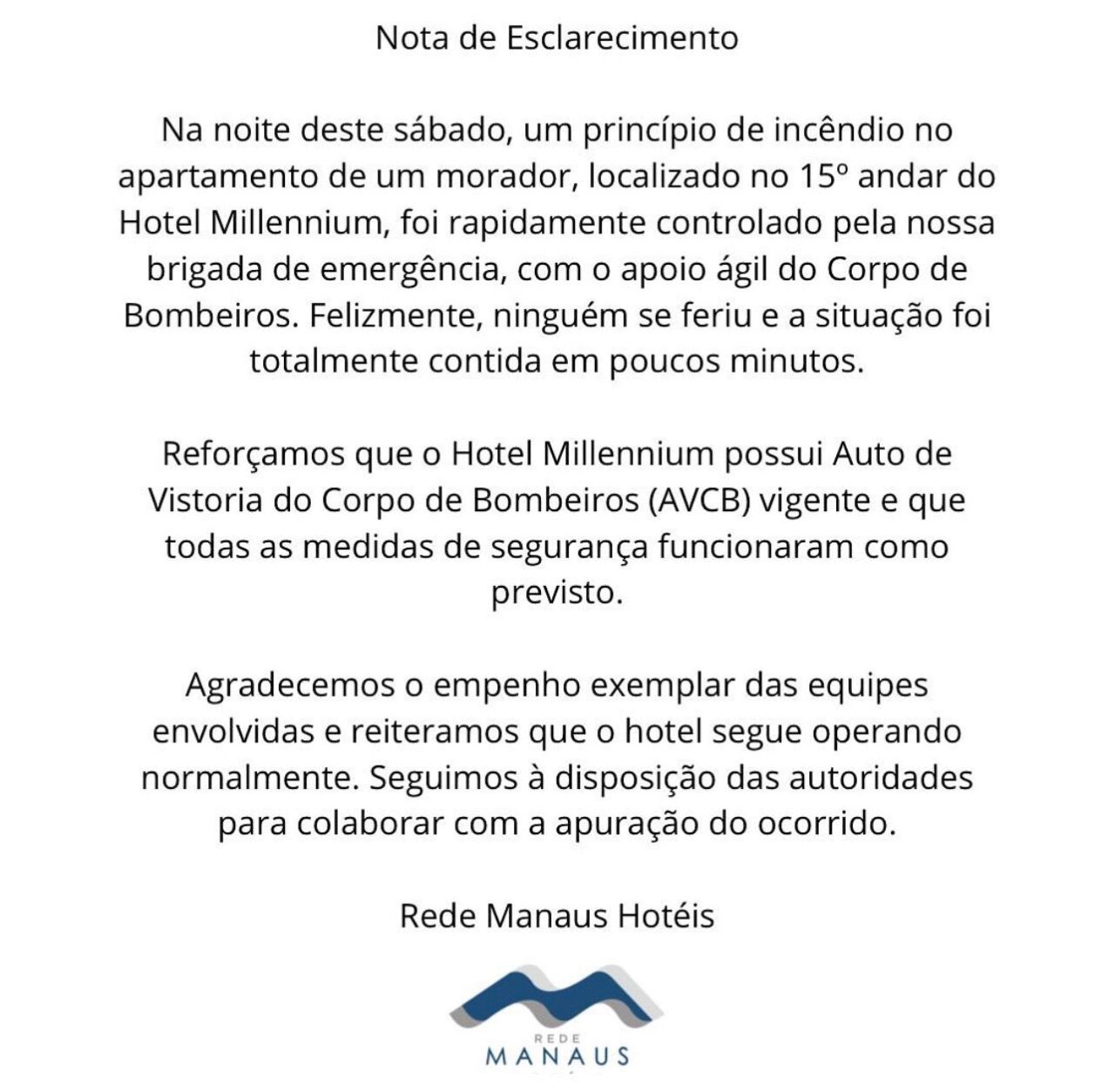 De acordo com informações preliminares, as chamas começaram dentro do quarto e chamaram atenção de funcionários do hotel, que acionaram a brigada de incêndio interna. O Corpo de Bombeiros Militar do Amazonas (CBMAM) chegou em seguida para reforçar o controle da situação e realizar a inspeção de segurança.