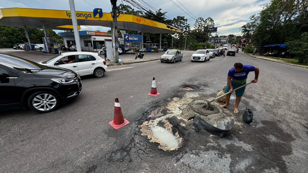 MANAUS (AM) — A população do bairro Cidade Nova, na zona Norte de Manaus, está assumindo o papel que seria da prefeitura e realizando, por conta própria, serviços de tapa-buracos em uma das principais vias da região: a Avenida Sumaúma. O trecho, de grande fluxo de veículos e ônibus, apresenta diversos buracos que, segundo moradores, oferecem riscos de acidentes e já teriam causado até mortes.