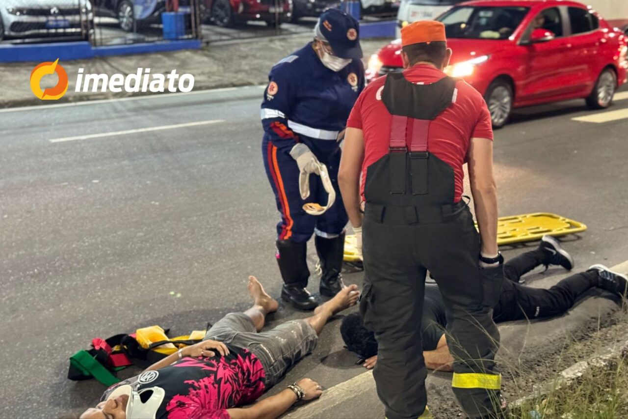Manaus (AM) – Um grave acidente de trânsito foi registrado na noite deste sábado (12), na avenida Cosme Ferreira, na Zona Leste de Manaus. Um pedestre foi atropelado por um motociclista exatamente em uma faixa de pedestres, provocando ferimentos em ambas as vítimas. O caso gerou lentidão no trânsito da via, enquanto populares acionavam o Serviço de Atendimento Móvel de Urgência (Samu).