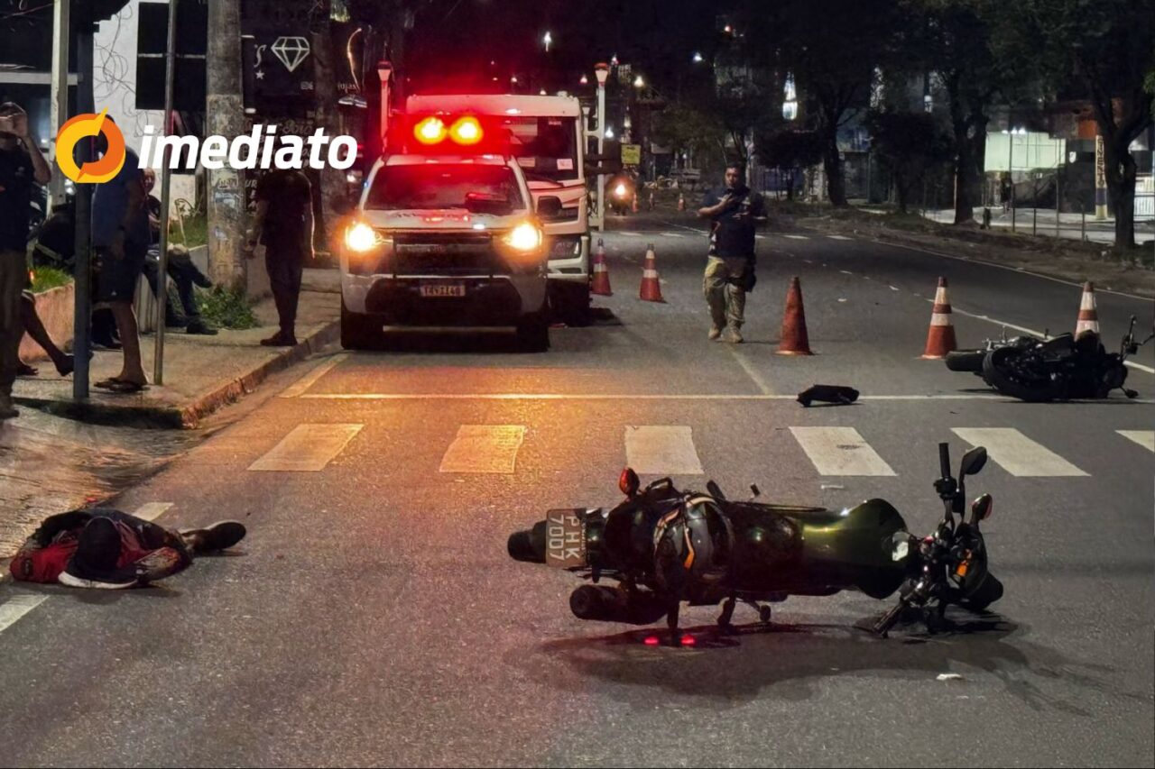 O motociclista tentou desviar para evitar a colisão direta, mas acabou atingindo lateralmente a outra moto. Com o impacto, os condutores caíram na pista. Um deles ficou ferido, mas estava consciente no momento do atendimento médico. Uma segunda ambulância também foi acionada para prestar suporte.