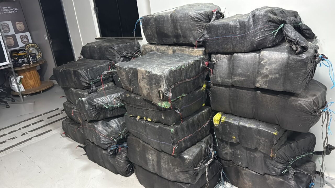 Operação da Polícia Civil do Amazonas apreende 1,5 tonelada de drogas e prende quatro estrangeiros no rio Solimões.