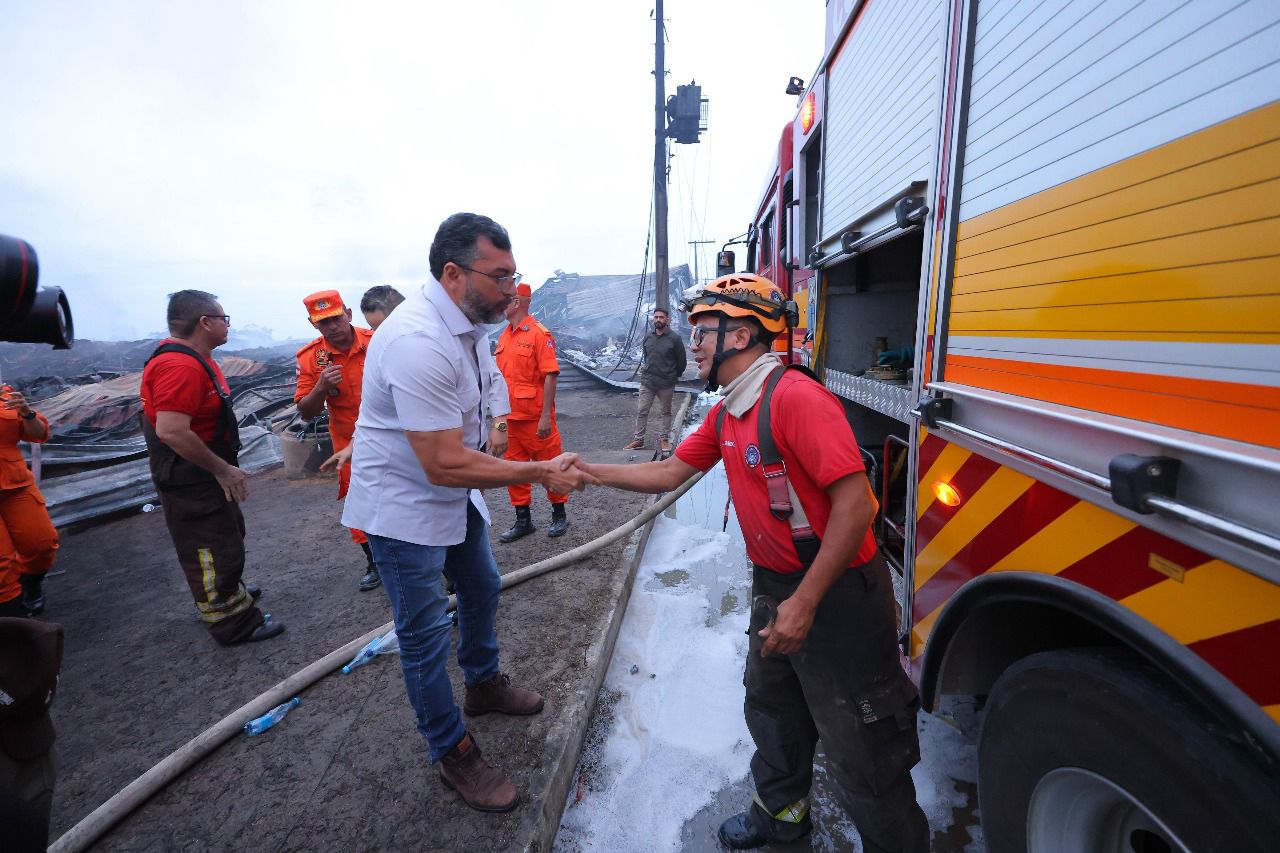 Governador acompanha ações do Corpo de Bombeiros no combate a incêndio em fábricas de Manaus.