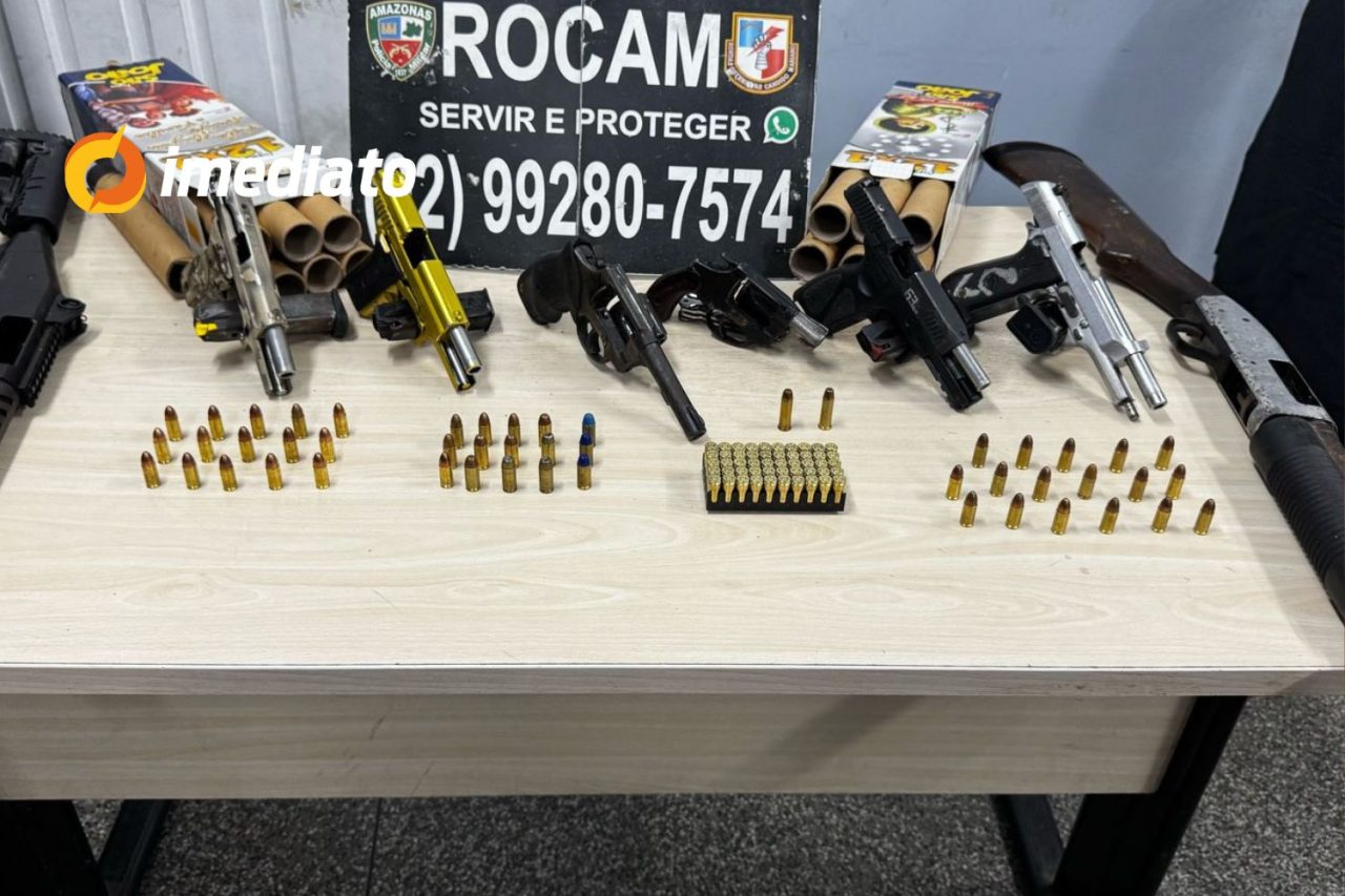 MANAUS-AM | Na noite desta quinta-feira (14), um intenso foguetório em diversas áreas de Manaus chamou a atenção da população e terminou com prisões e apreensão de armas na comunidade Fátima 1. A ação foi conduzida pela ROCAM (Rondas Ostensivas Cândido Mariano) e pela Polícia Militar, com apoio da inteligência do 2º Batalhão.