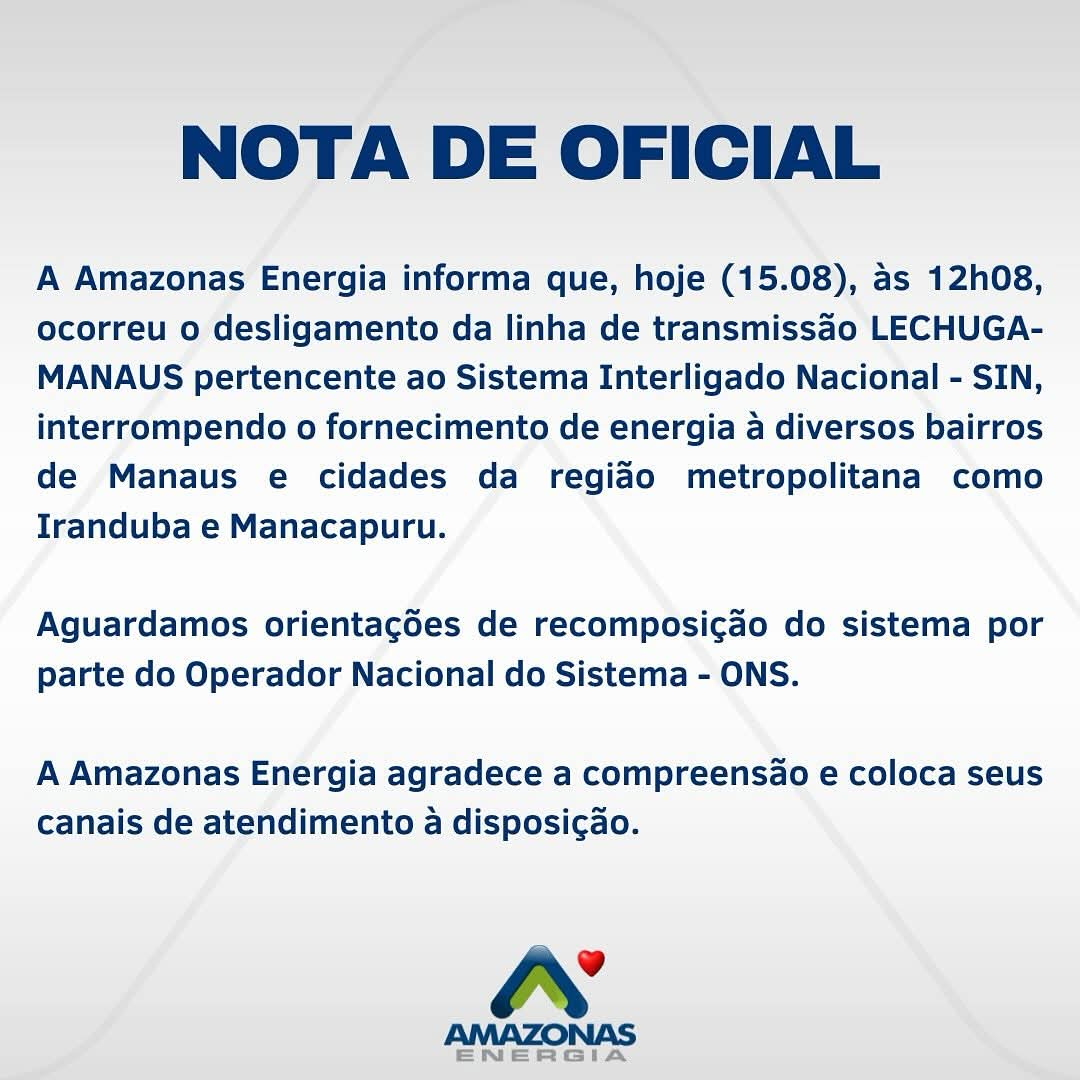 A Amazonas Energia informou ainda que seus canais de atendimento estão disponíveis para esclarecer dúvidas e prestar suporte à população afetada. A empresa agradeceu a compreensão dos consumidores durante o período de interrupção.