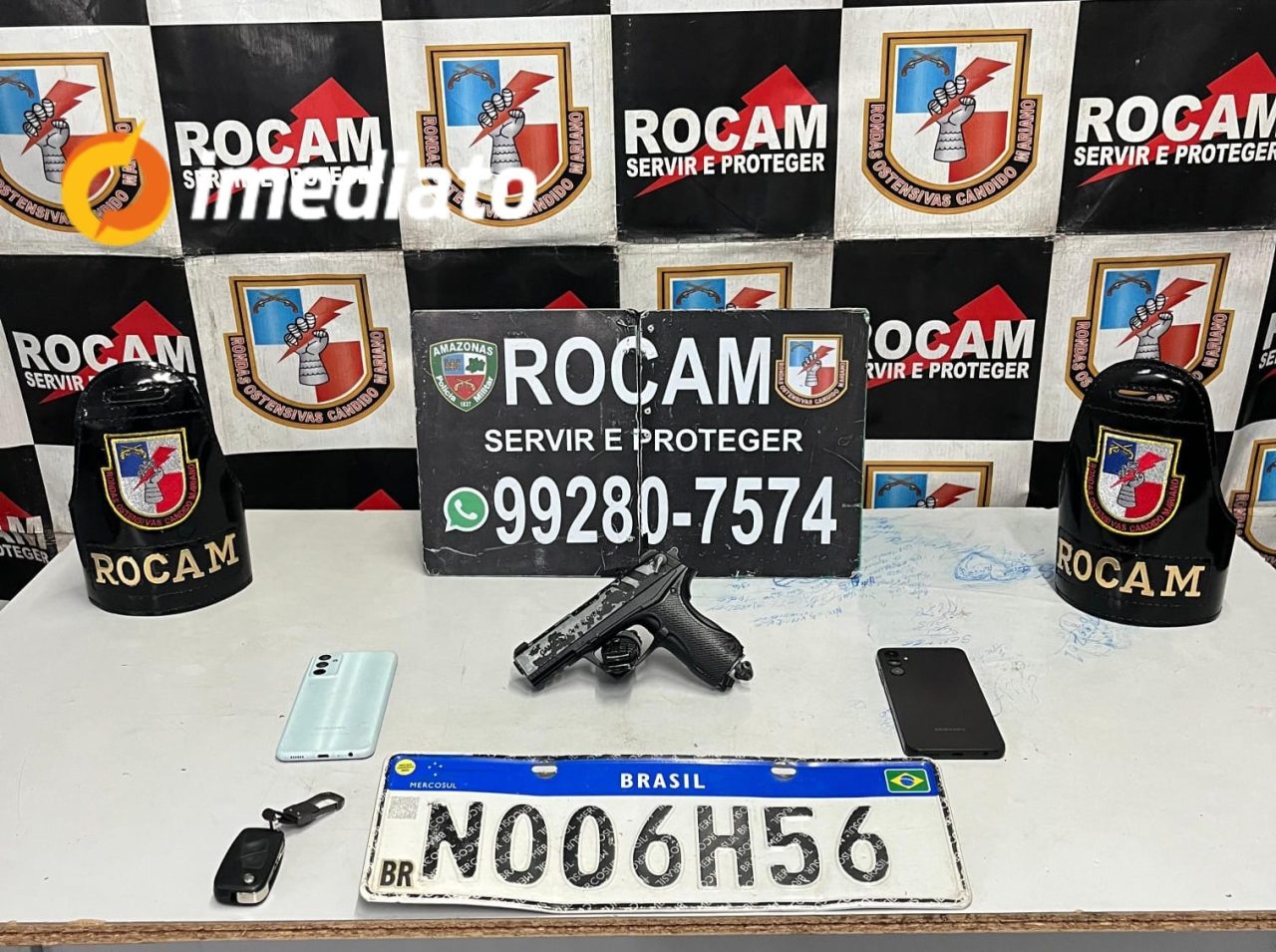 Manaus (AM) – Dois homens foram presos pela Ronda Ostensiva Cândido Mariano (ROCAM) na tarde deste domingo (17) em Manaus, suspeitos de assaltar um veículo no bairro Nova Cidade, na noite de sábado (16).