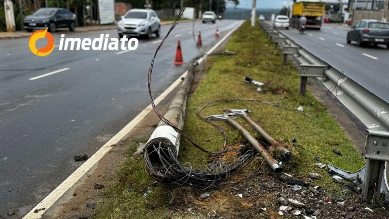 Um acidente registrado na tarde desta quarta-feira (27) na Avenida do Turismo, zona oeste de Manaus, deixou um homem com ferimentos leves. O veículo, pertencente a uma empresa de soluções tecnológicas, perdeu o controle e colidiu com um poste de iluminação, que caiu com o impacto da batida.
