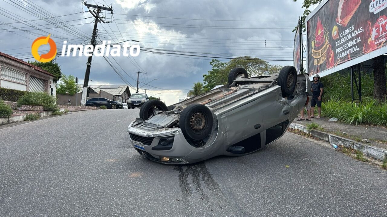 Um acidente de trânsito foi registrado na noite desta sexta-feira (5) na rua Visconde de Porto Seguro, bairro Flores, zona oeste de Manaus. Um carro utilizado para transporte por aplicativo capotou após ser atingido por outro veículo, cujo motorista fugiu do local sem prestar socorro.