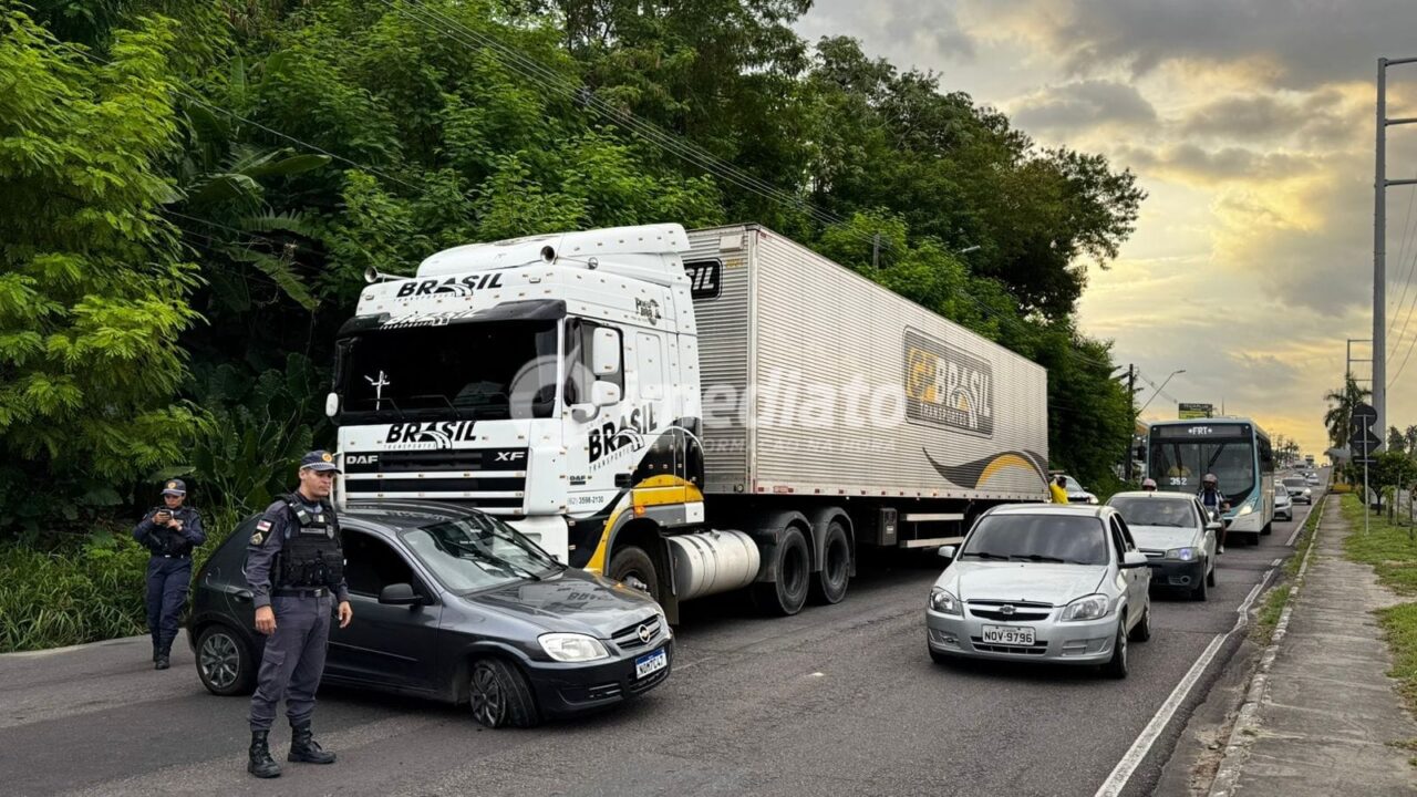 Um acidente envolvendo uma carreta e um carro de passeio provocou lentidão no trânsito da avenida Camapuã, no bairro Nossa Senhora de Fátima, zona norte de Manaus, na tarde desta quinta-feira (25).