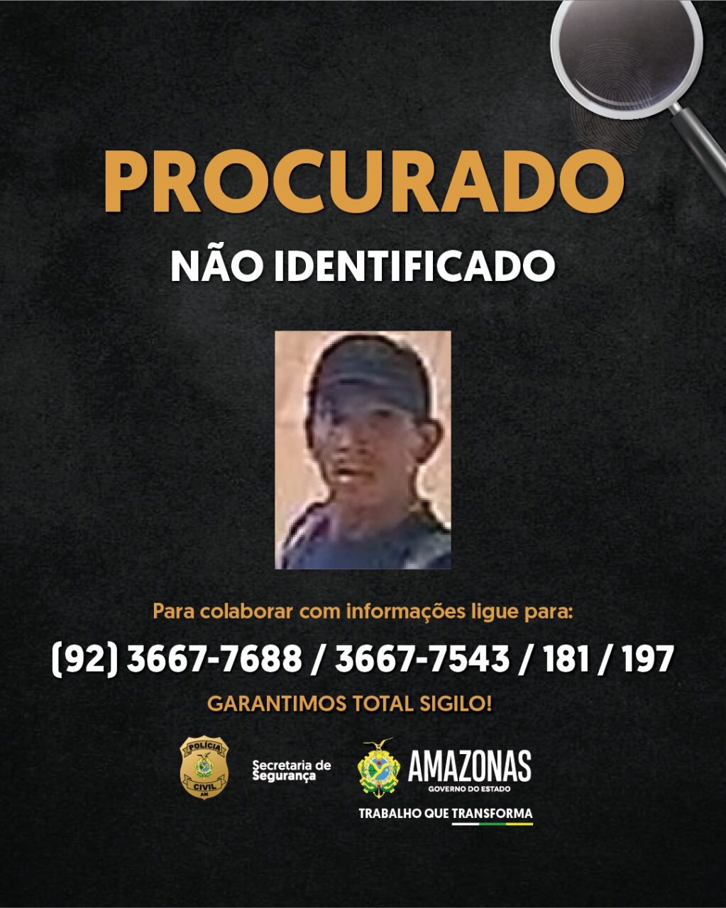 A Polícia Civil solicita que qualquer pessoa que tenha informações sobre o paradeiro do suspeito entre em contato imediatamente pelos canais oficiais. O Disque Denúncia disponibiliza os números (92) 3667-7688, (92) 3667-7575, 197 ou 81 da Secretaria de Segurança Pública.