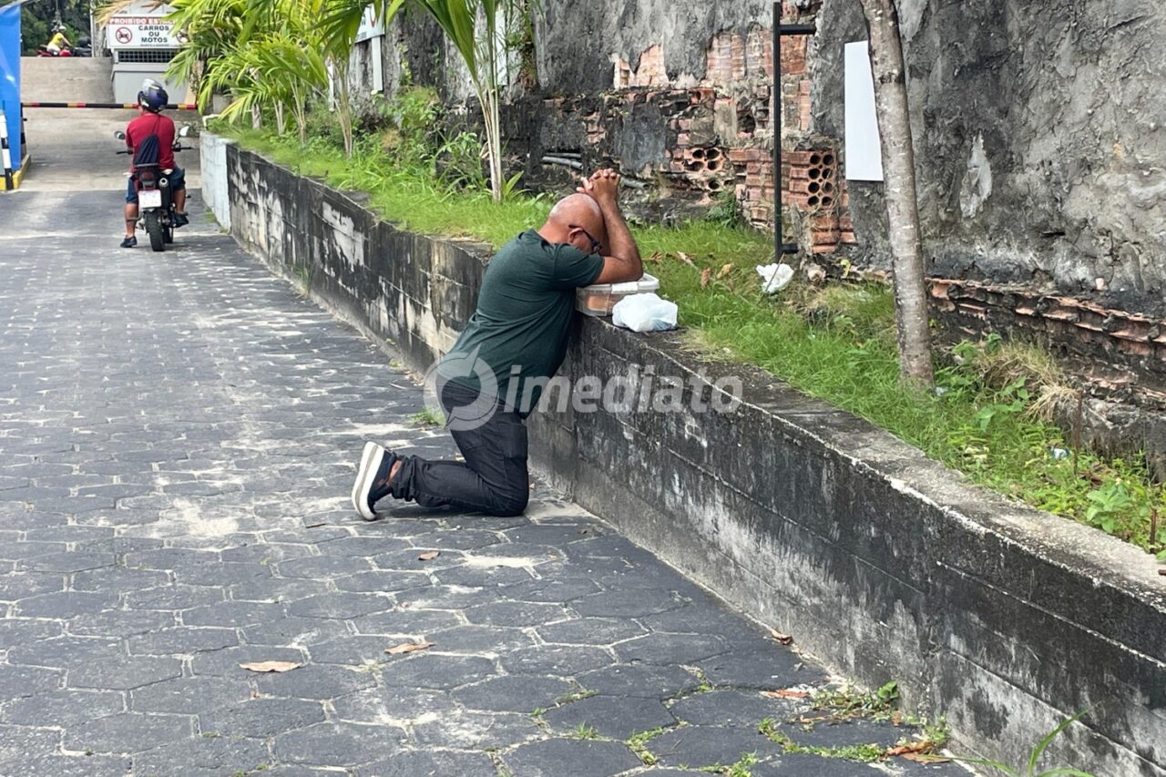 Manaus, AM – Um ato de fé e determinação chamou atenção de quem passava pela Avenida Djalma Batista, na manhã desta terça-feira. Renato Coutinho, de 49 anos, foi flagrado de joelhos sobre suas vasilhas de bolos, orando para que suas vendas fossem abençoadas. O vídeo, registrado por um transeunte, viralizou e emocionou moradores e comerciantes da região.