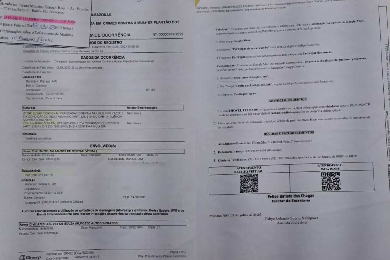 Uma mulher identificada como Suzie Ellen Souza busca justiça após ser vítima de tentativa de feminicídio em 2022, na zona leste de Manaus. Ela relata ter sido brutalmente agredida pelo ex-sogro enquanto estava grávida de três meses. O caso ocorreu no conjunto Ouro Verde, bairro Coroado, e voltou à tona nesta semana após a Justiça absolver o acusado.