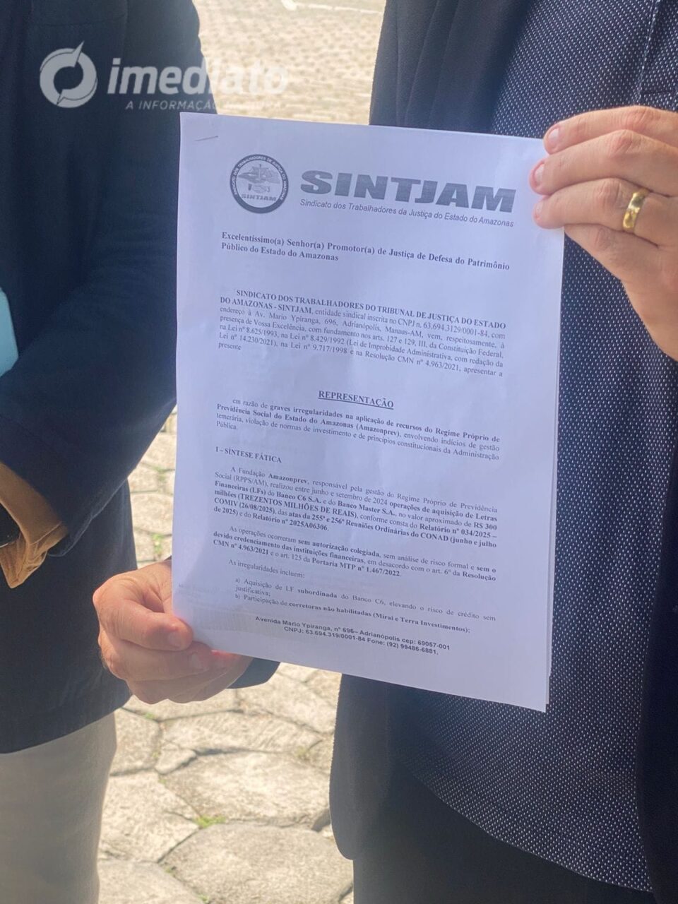 Manaus (AM) – O Sindicato dos Trabalhadores da Justiça do Amazonas (Sintjam) protocolou uma denúncia no Ministério Público Estadual (MPE-AM) apontando supostas irregularidades em investimentos realizados pela Fundação Amazonprev, responsável pela previdência dos servidores públicos estaduais.