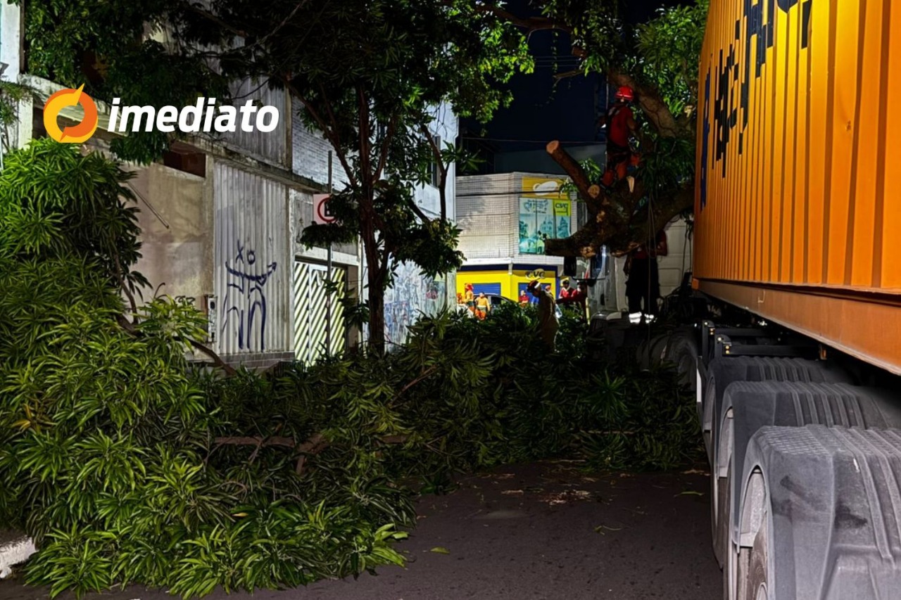 Manaus-AM | Uma árvore centenária caiu sobre uma carreta na noite desta quinta-feira (17), no cruzamento da Rua 24 de Maio com a Rua Costa e Silva, no centro de Manaus. O incidente ocorreu por volta das 22h10, no momento em que o veículo passava pelo local.