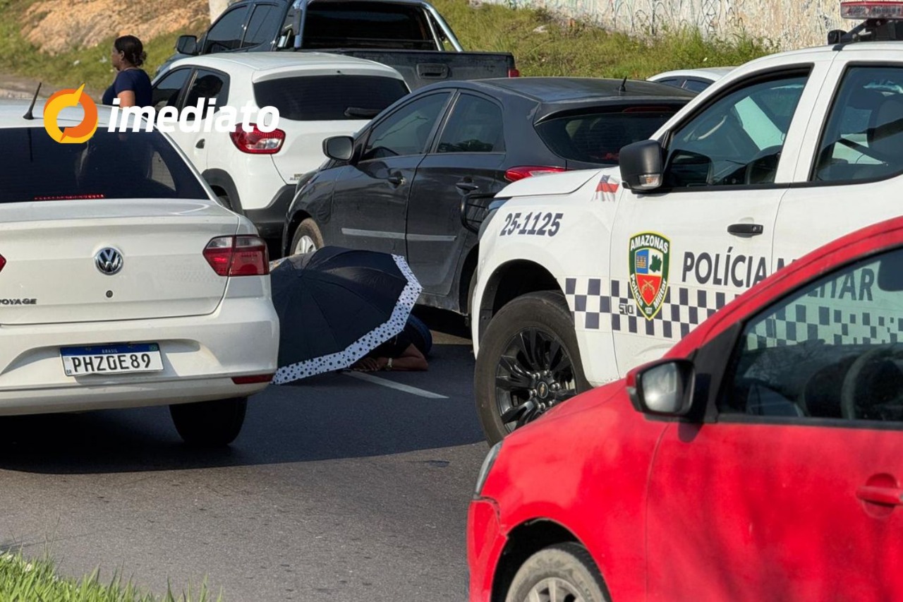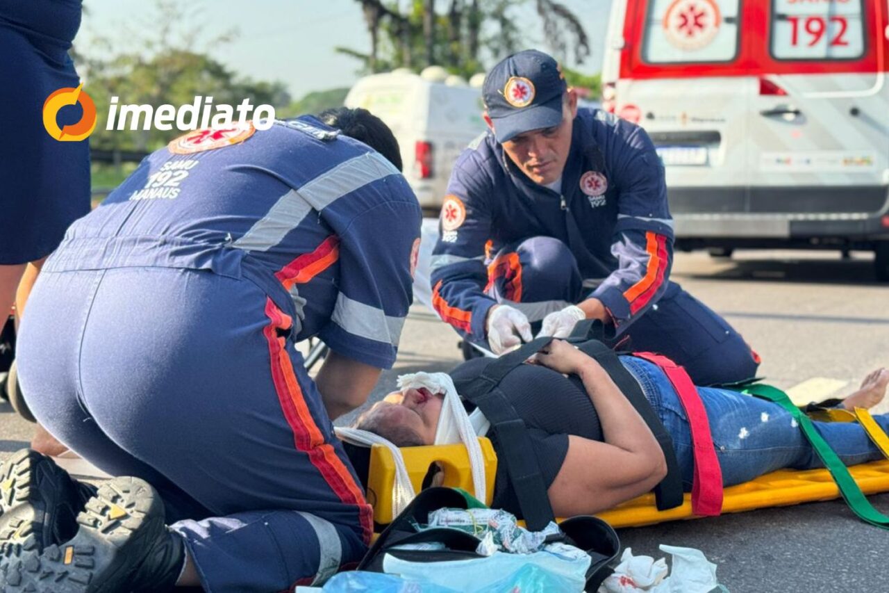 MANAUS-AM | Na manhã desta sexta-feira (17), por volta das 7h30, um acidente envolvendo três veículos, dois carros e uma motocicleta, deixou uma mulher gravemente ferida na Avenida Torquato Tapajós, sentido centro, em frente à Igreja Nova Batista.