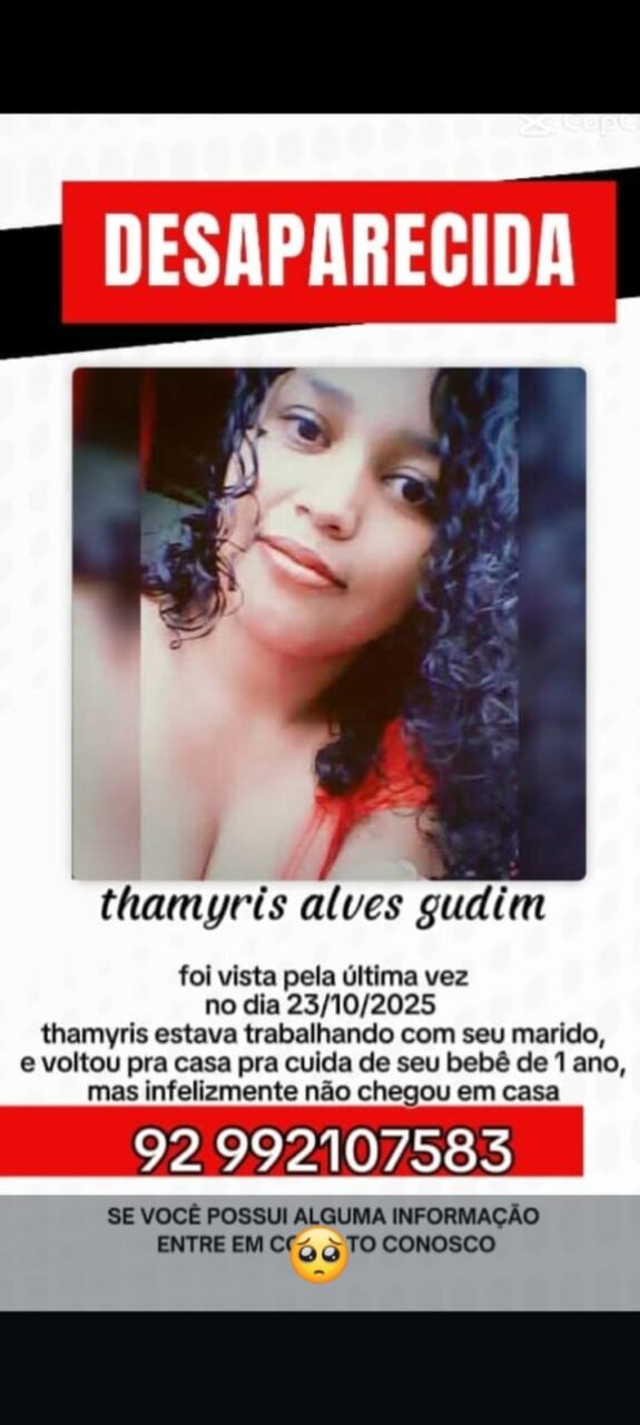 A família pede que qualquer informação seja comunicada imediatamente, reforçando que os filhos de Tamires estão muito emocionados e sentindo a falta da mãe. Contato da família: 92 99210-7583.