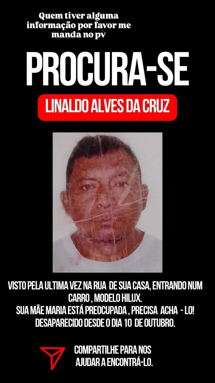 O irmão de Linaldo afirmou que o viu pela última vez próximo à Praça da Polícia, no Centro, antes de ele desaparecer. Desde então, nenhuma nova informação surgiu.