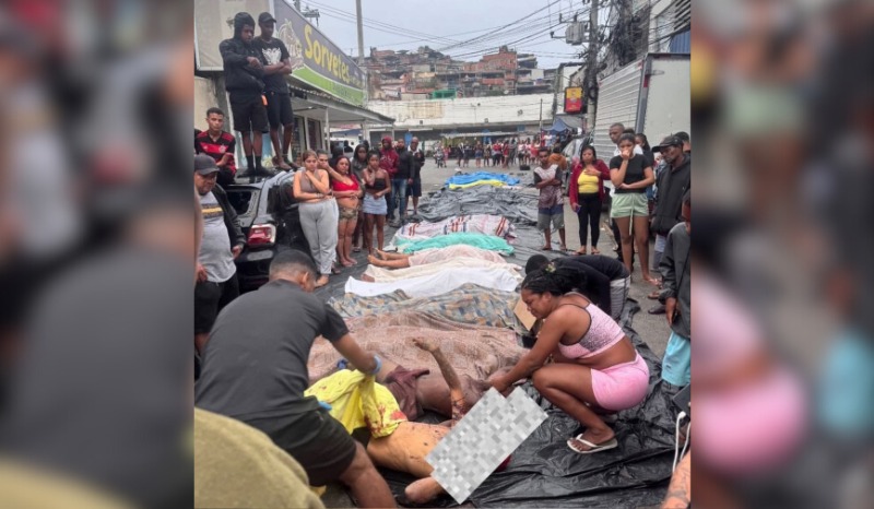 Ao longo da madrugada de quarta-feira (29), cerca de 50 corpos foram recolhidos e levados novamente para a Praça São Lucas. Moradores relatam cenas de devastação nas comunidades, com famílias tentando lidar com a tragédia e a violência que marcou a região.