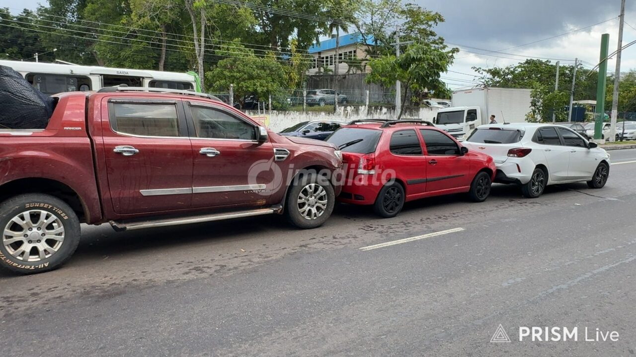 Motorista passa mal após causar engavetamento na Avenida Constantino Nery em Manaus.