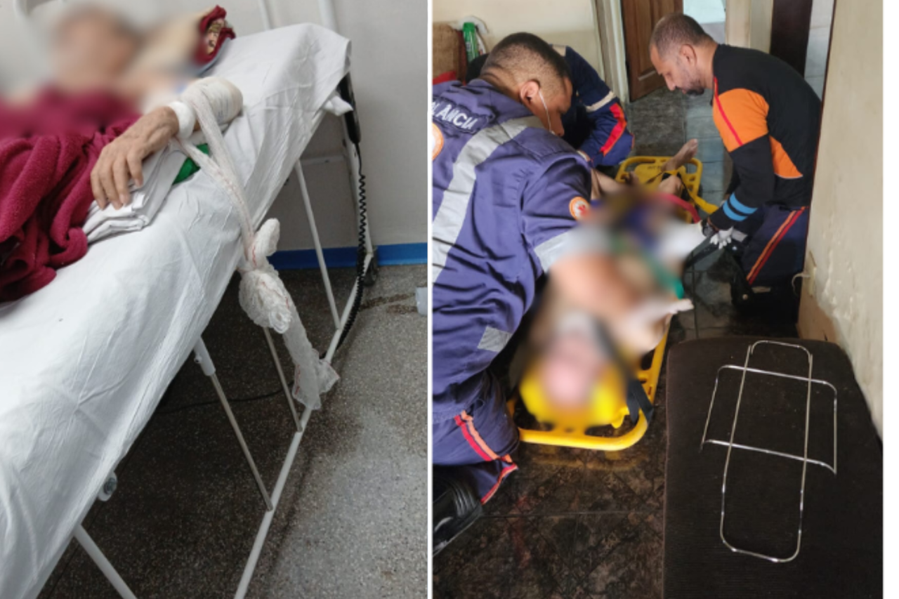 Segundo o familiar, além das lesões físicas, o pai apresenta forte abalo emocional após o trauma do crime. O idoso estaria recusando o uso dos medicamentos que fazia regularmente e demonstrando sinais de agitação psicológica. Em razão do quadro, foi necessário que ele fosse contido no leito hospitalar, enquanto aguarda o procedimento cirúrgico na unidade de saúde. O filho também relatou insatisfação com a demora no atendimento prioritário ao idoso.