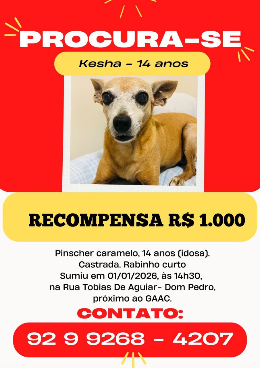 A cadela, chamada Kisha, tem 14 anos de convivência com a tutora, Mayara, e nunca havia apresentado comportamento de fuga. Segundo familiares, o desaparecimento é considerado atípico e pode ter sido provocado por susto causado por barulho de fogos de artifício, comuns no período de virada do ano.