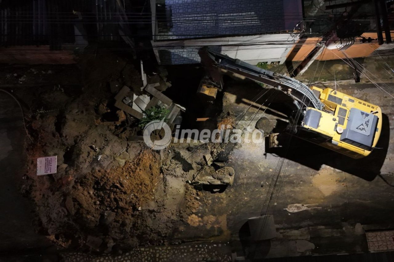 A situação se agravou com a presença de máquinas pesadas na via, utilizadas em uma tentativa de contenção do solo. Segundo relatos, a movimentação dos equipamentos causa trepidações, aumentando o receio de que novas estruturas cedam.