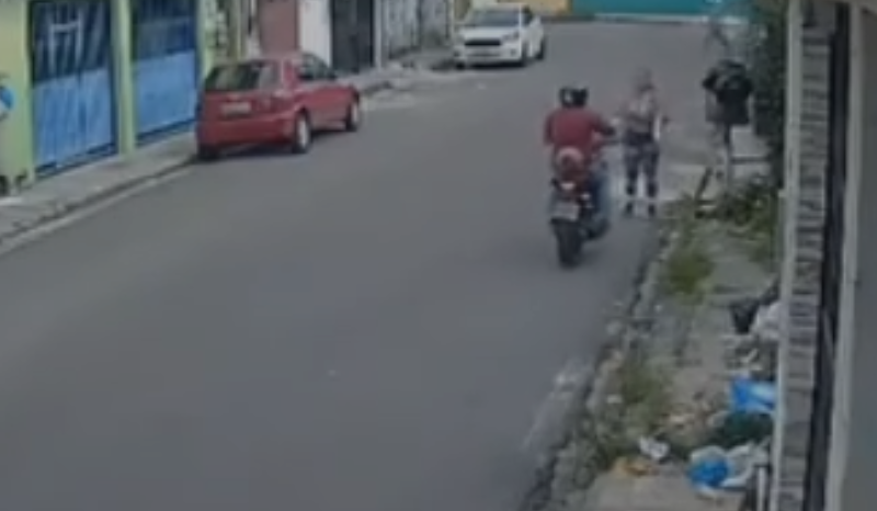No vídeo, a vítima aparece caminhando pela rua quando é surpreendida por um criminoso em uma motocicleta, que trafegava no sentido contrário. O homem se aproxima, encurrala a mulher e toma o celular dela.