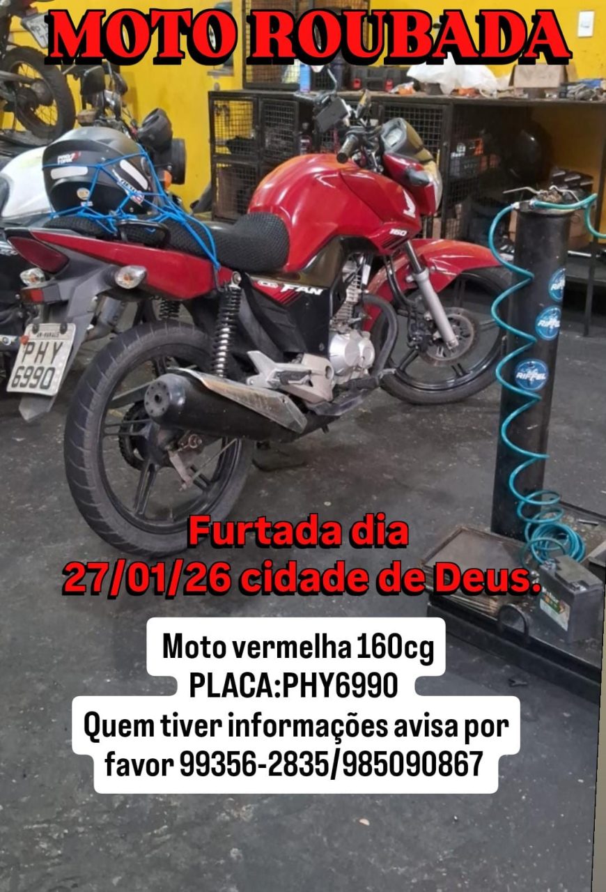 A motocicleta levada é uma Honda CG 160, de cor vermelha, placa PHY-6990. O proprietário relatou que o veículo é essencial para sua sobrevivência, pois depende dele diariamente para trabalhar e garantir o sustento da família. Diante da situação, ele procurou a equipe de reportagem para pedir ajuda na divulgação do caso, na esperança de localizar a moto o quanto antes.