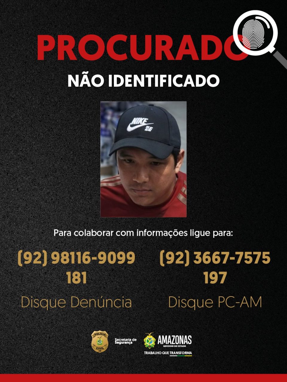 A PC-AM solicita que quaisquer informações sobre o paradeiro dos suspeitos sejam repassadas pelos números (92) 98116-9099, do 9º DIP; 197 e (92) 3667-7575, da PC-AM; ou pelo 181, da Secretaria de Segurança Pública do Amazonas (SSP-AM). A identidade do denunciante será preservada.