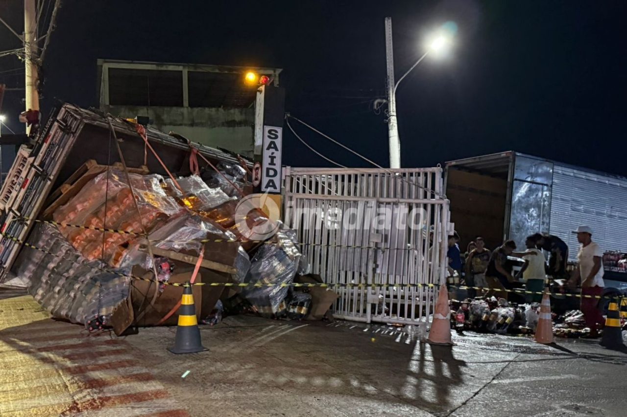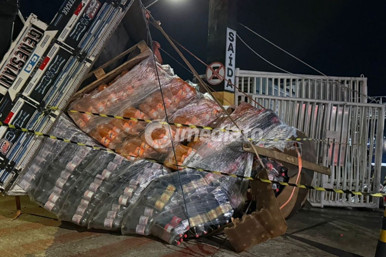 MANAUS-AM | Uma carreta carregada de refrigerantes tombou no início da noite desta quinta-feira (5) e causou a interdição parcial da entrada do Porto do Demétrio, localizado na Avenida Desembargador Felismino Soares, no bairro Colônia Oliveira Machado, Zona Sul de Manaus. O local é considerado um dos principais pontos de circulação de cargas destinadas ao interior do Amazonas.