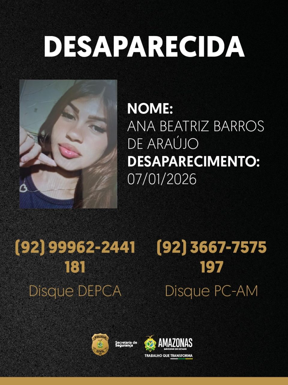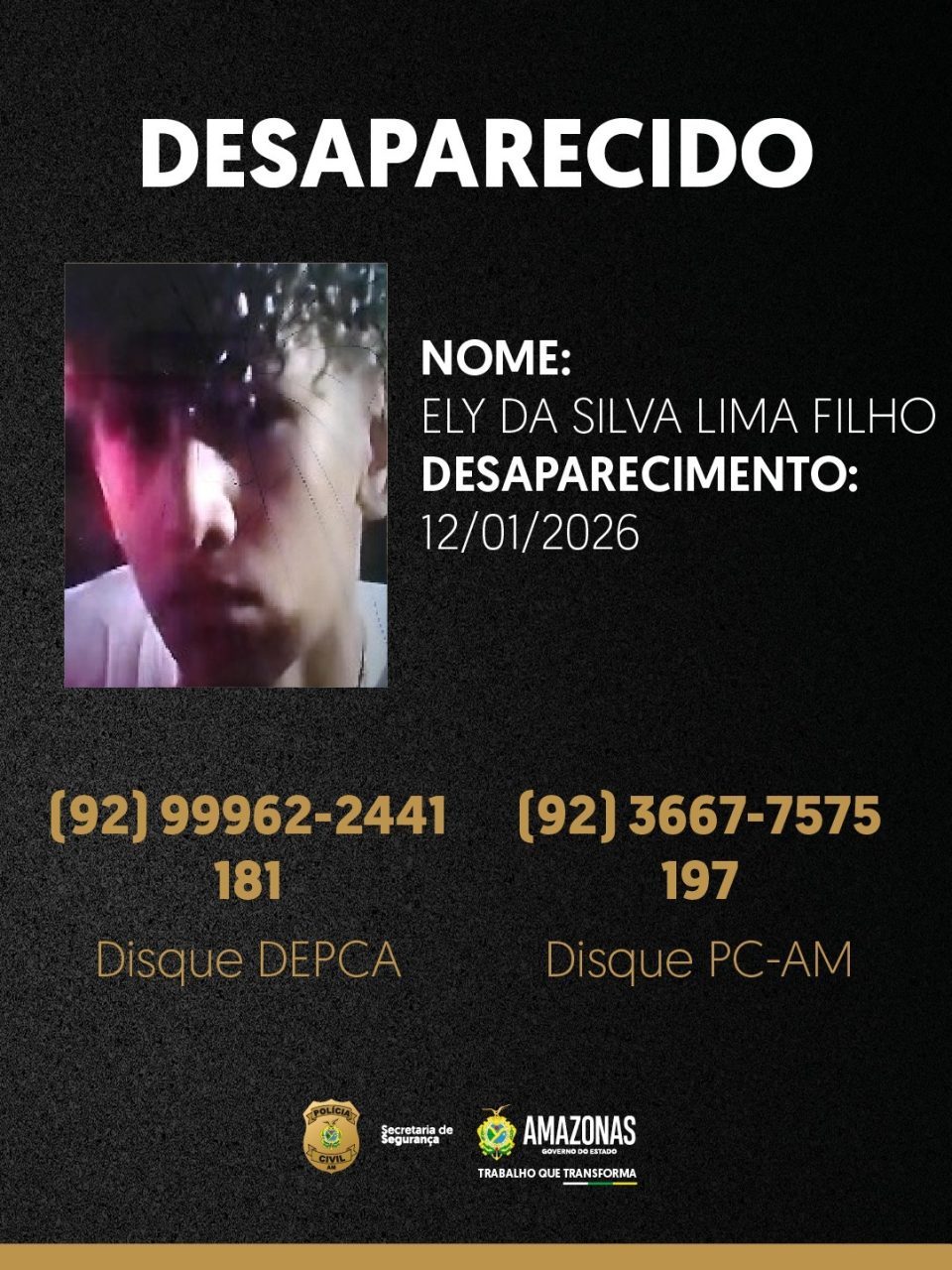 A Polícia Civil solicita que qualquer informação que possa ajudar na localização dos desaparecidos seja repassada pelos números (92) 99962-2441, da Depca; 197, da PC-AM; (92) 3667-7575, ou 181, da Secretaria de Segurança Pública do Amazonas.