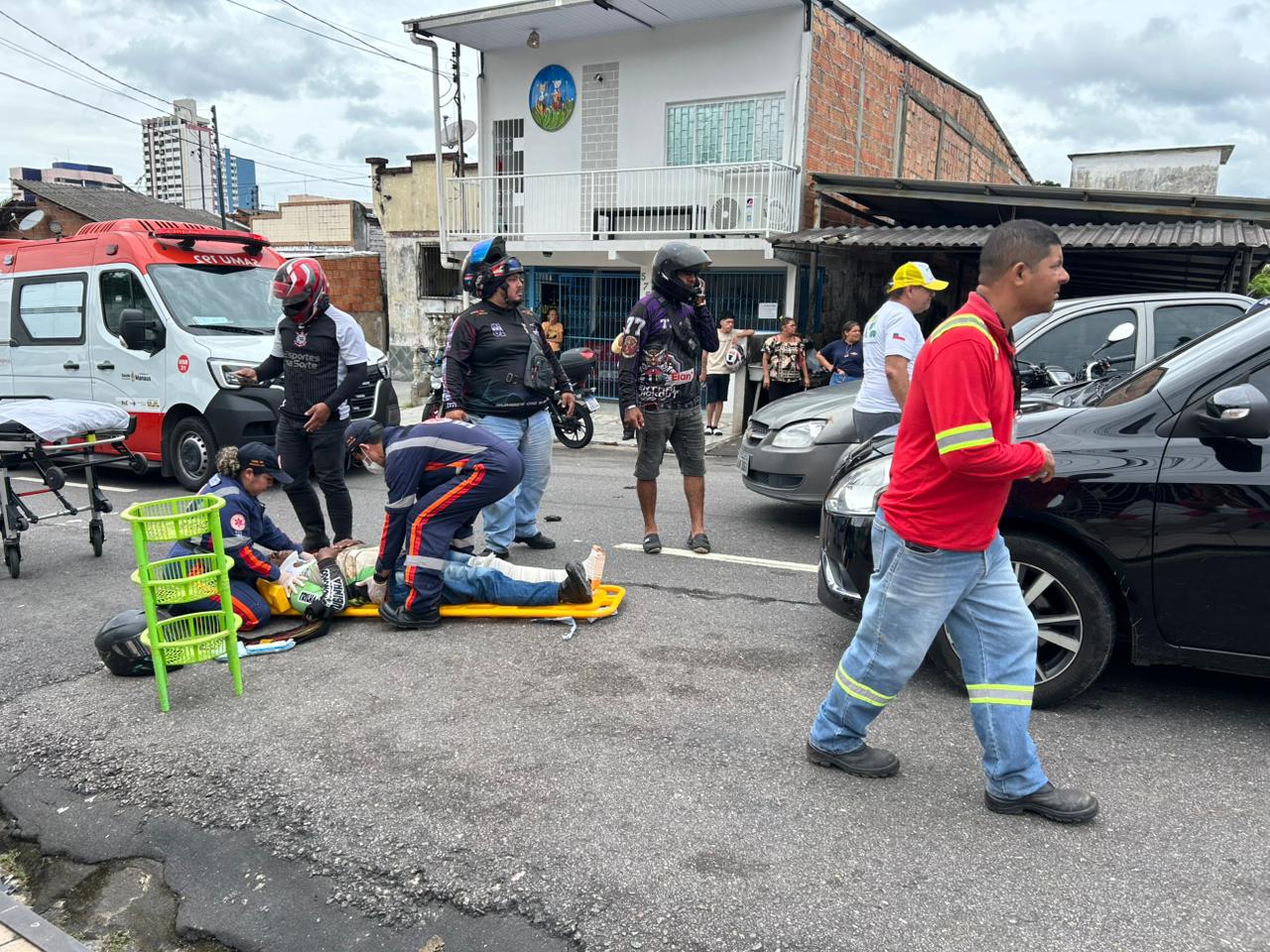 Manaus (AM) — Duas pessoas ficaram feridas na tarde de quarta-feira (10/02) em um acidente de trânsito envolvendo uma motocicleta e dois carros na rua Major Gabriel, no Centro de Manaus.