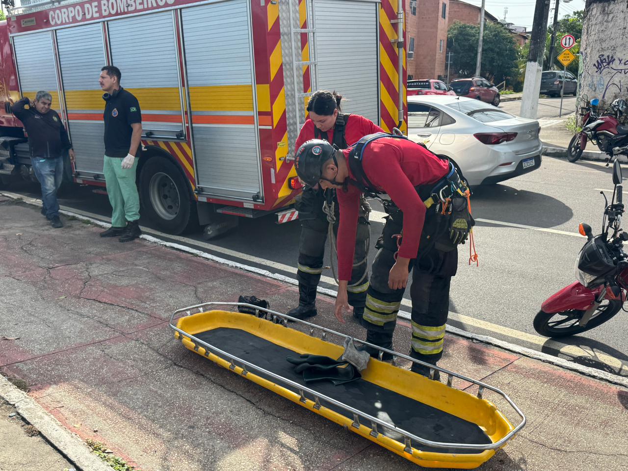 Equipes da Polícia Militar isolaram a área para os trabalhos da perícia. O corpo foi removido pelo Instituto Médico Legal (IML).