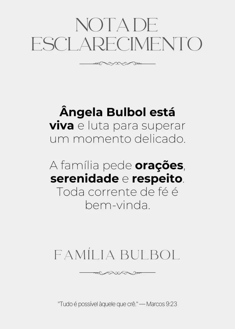 As informações falsas começaram a se espalhar na noite de sexta-feira (20), gerando comoção e mensagens de despedida. Diante da repercussão, familiares se manifestaram para desmentir o conteúdo e pediram respeito, orações e responsabilidade na divulgação de notícias.