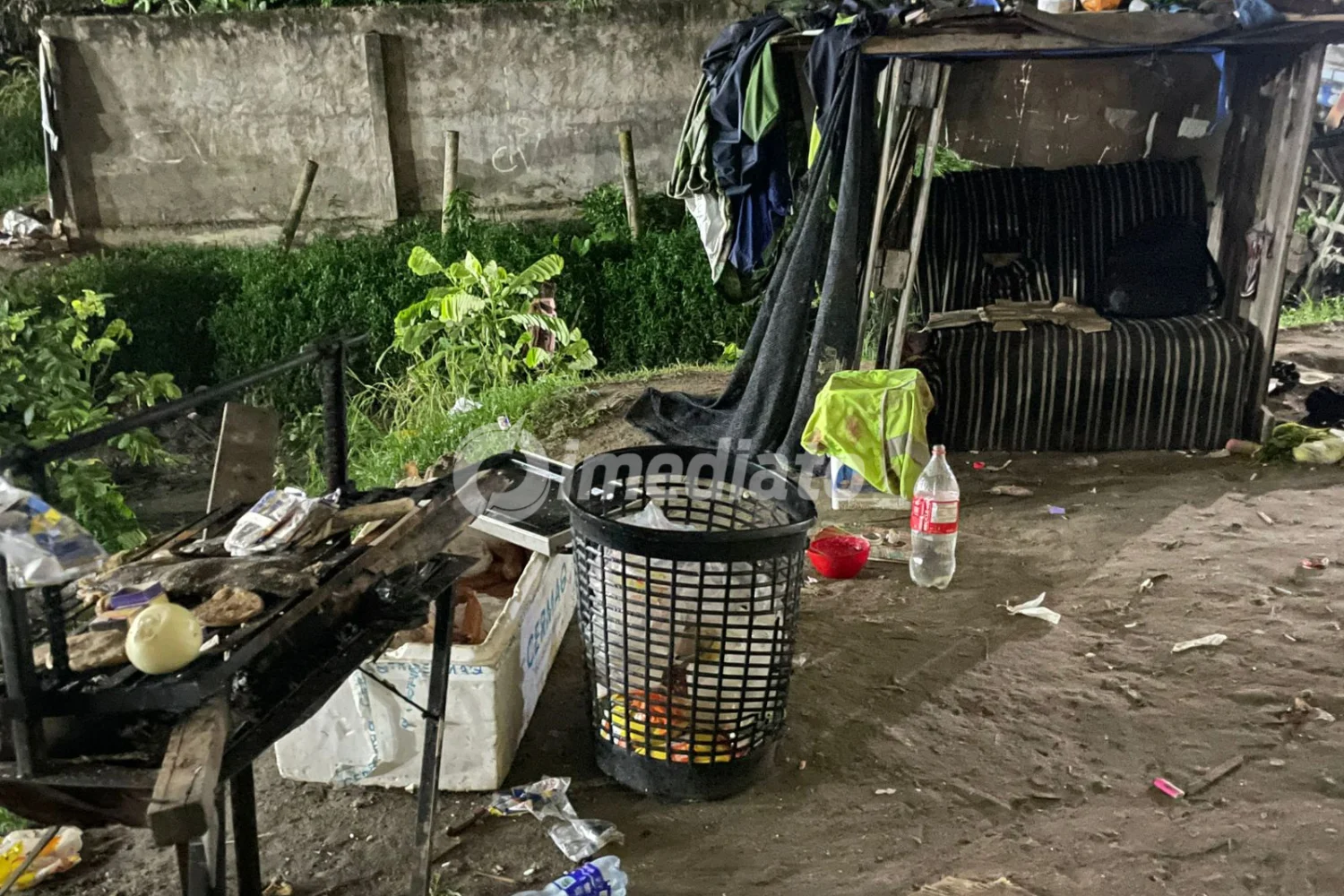 A região apresenta condições precárias de moradia. No local, foram encontrados casebres improvisados feitos com paletes, lonas e sacos plásticos. Também havia sofás velhos e objetos abandonados sendo utilizados como abrigo por pessoas em situação de vulnerabilidade.