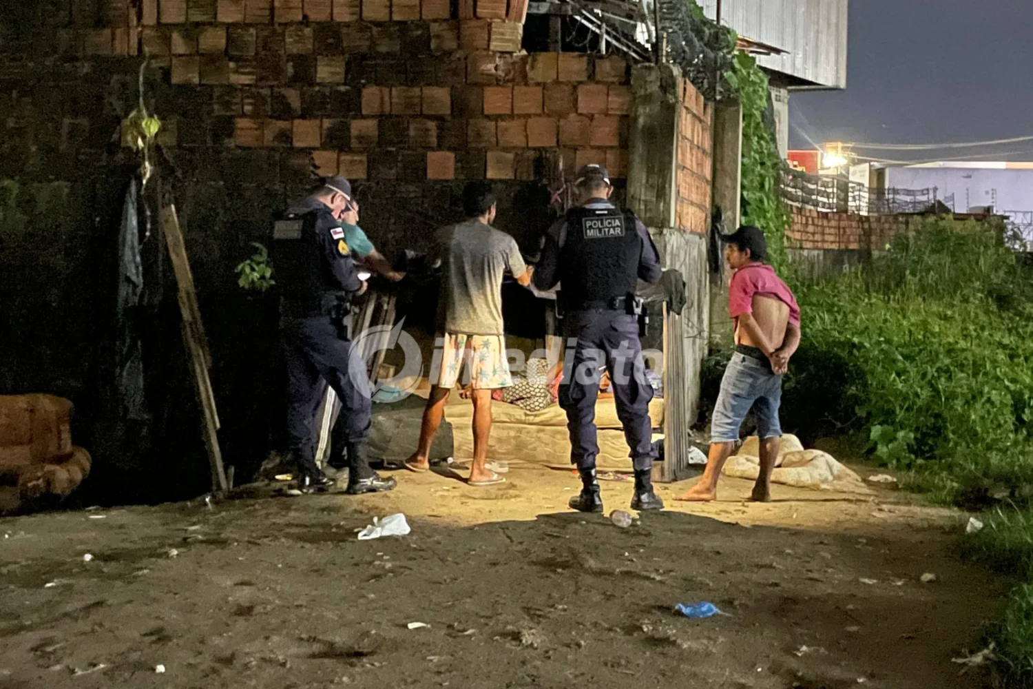 A ação foi conduzida por policiais da 14ª Companhia Interativa Comunitária (Cicom), que fizeram uma incursão em uma região marcada pela presença de usuários de drogas, suspeita de tráfico de entorpecentes e moradias improvisadas construídas sobre palafitas.