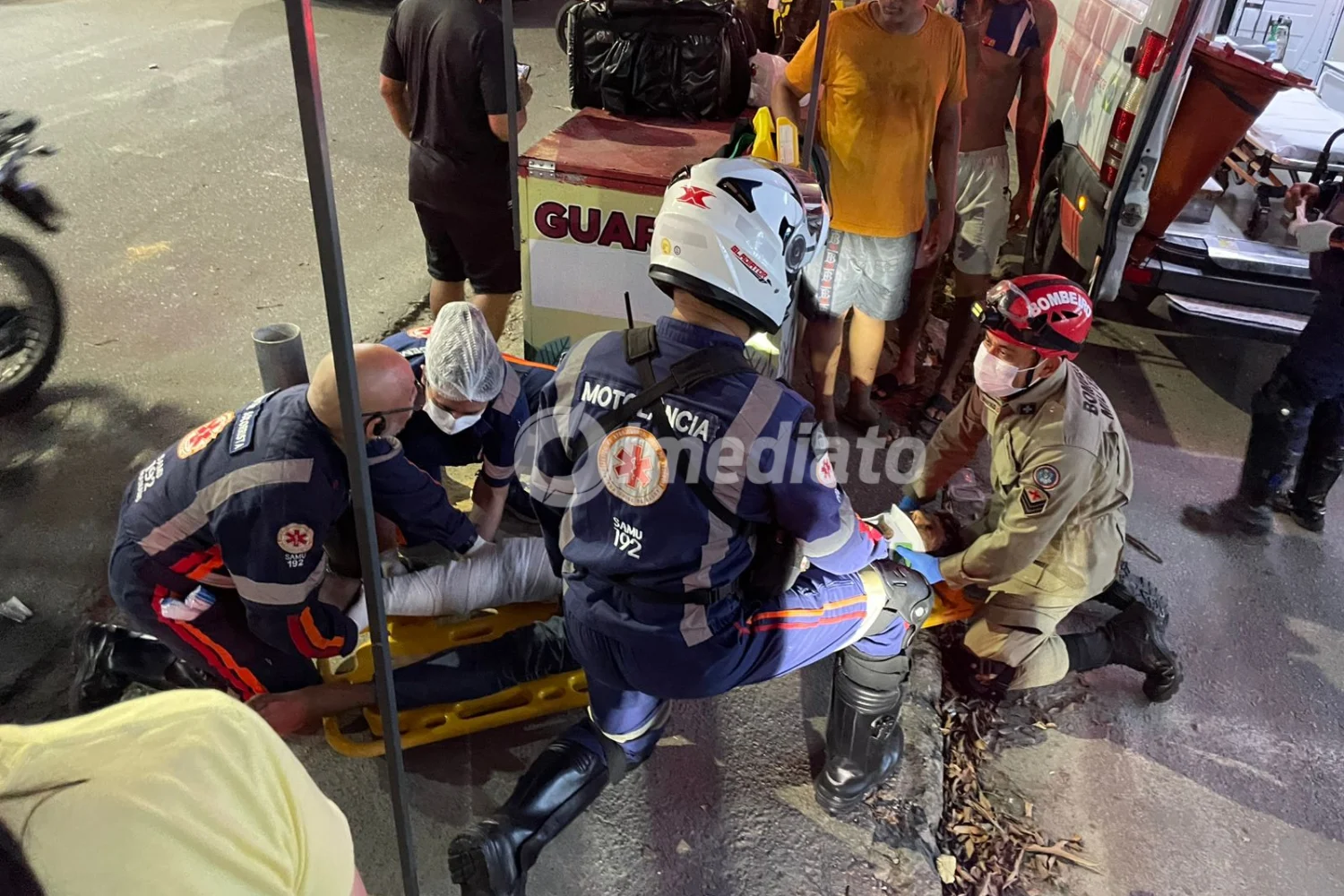 Com a força da batida, os dois motociclistas foram arremessados ao chão. Um deles sofreu uma fratura na perna direita e precisou receber atendimento imediato das equipes do Corpo de Bombeiros, que realizaram a imobilização do membro antes de colocá-lo na ambulância. O homem permanecia consciente, mas demonstrava fortes dores devido à gravidade da lesão.