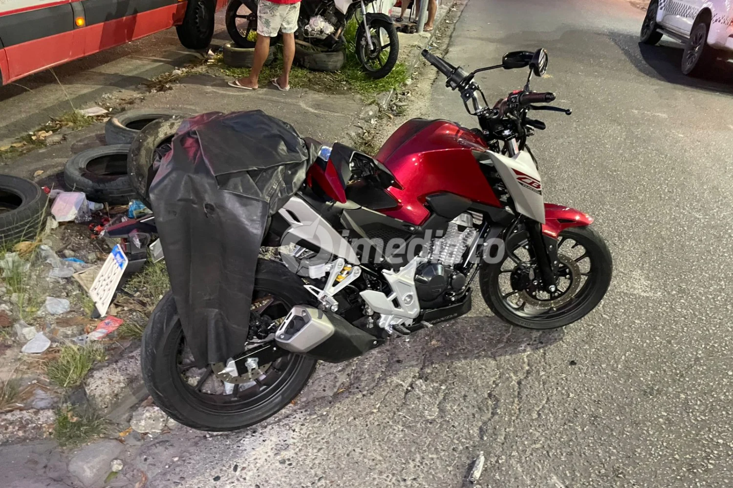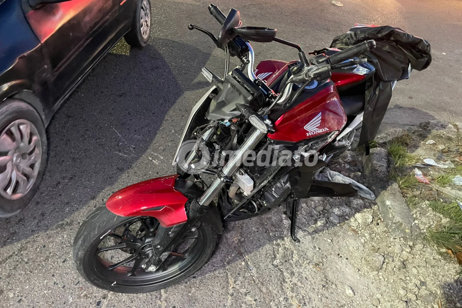 As motocicletas ficaram bastante danificadas. A moto que teria provocado o acidente, de cor vermelha, ficou com a parte frontal destruída e parou no canteiro central da avenida. Já a motocicleta branca utilizada pelo mototaxista apresentava danos significativos na lateral, resultado da colisão.