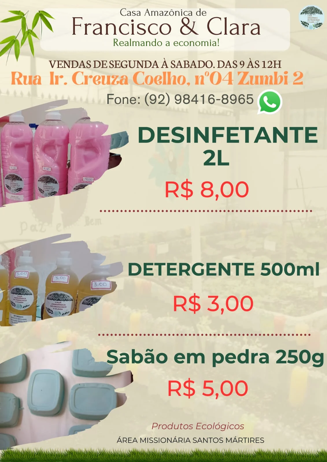 A Casa Amazônica funciona na rua Irmã Creuza Coelho e recebe tanto doações quanto interessados na compra dos produtos. A proposta busca aliar preservação ambiental, inclusão social e geração de renda por meio de práticas sustentáveis.