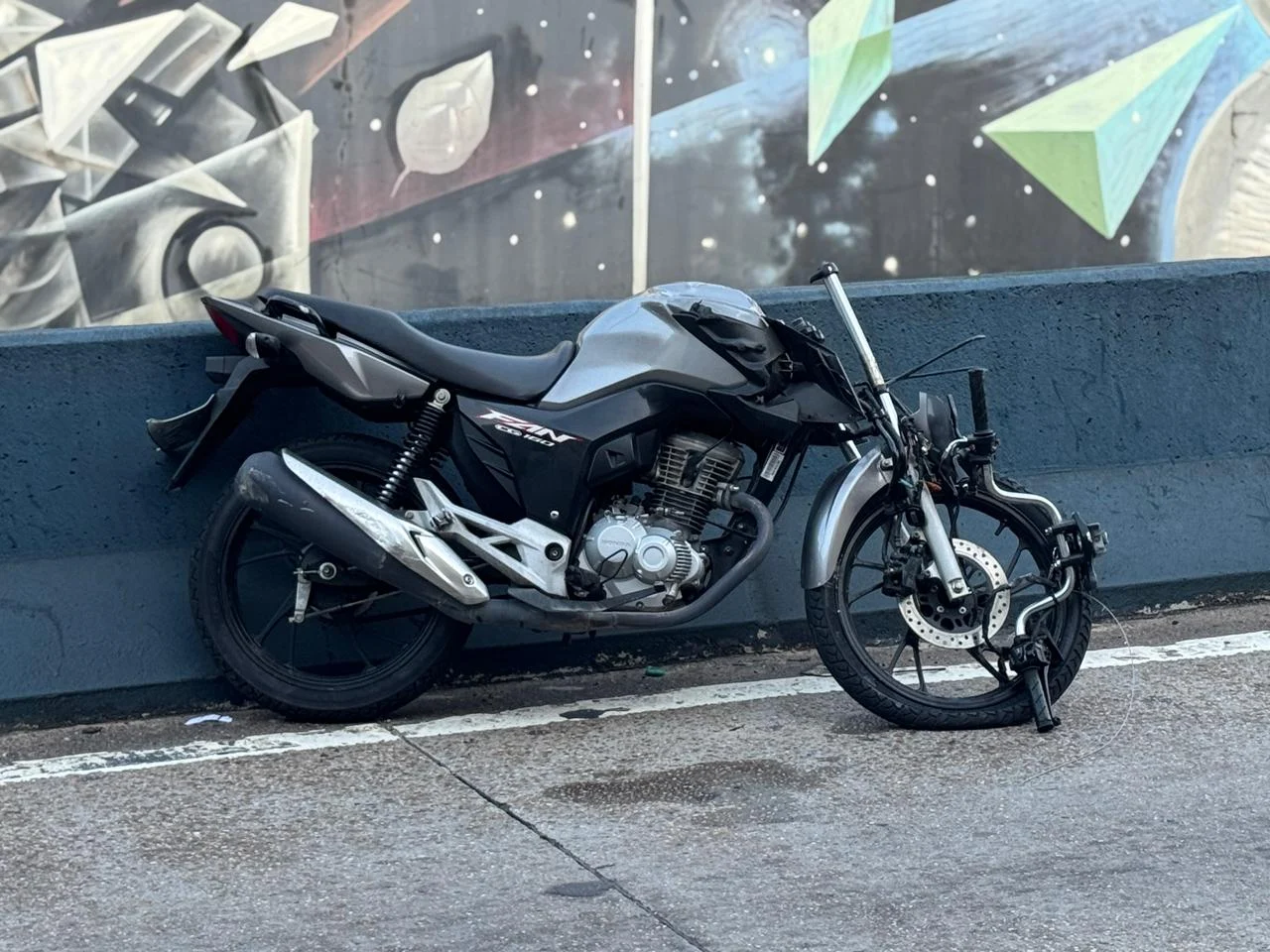 Motocicleta destruída após acidente que matou mulher na Av. Darcy Vargas. Foto: Johnnata Reis