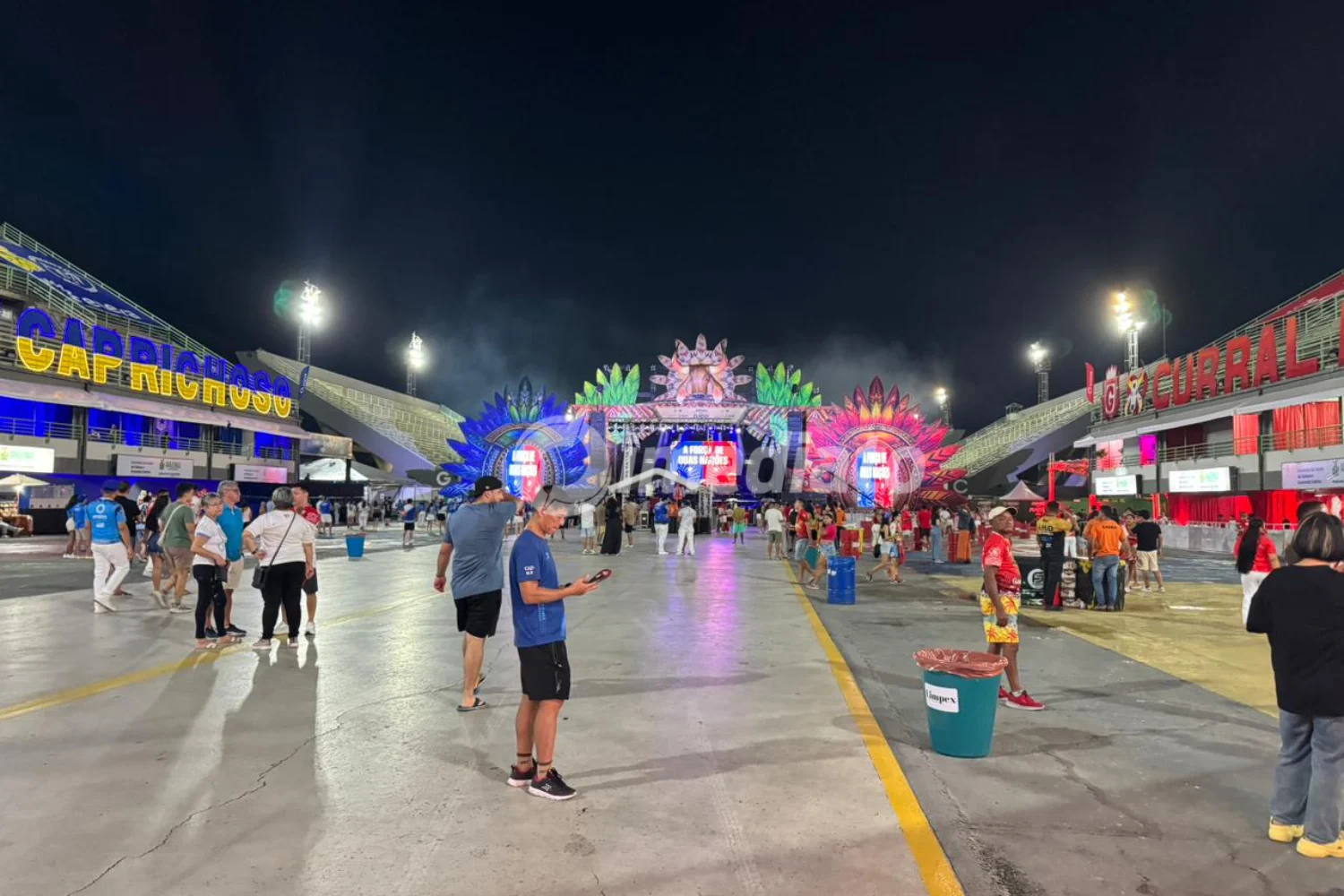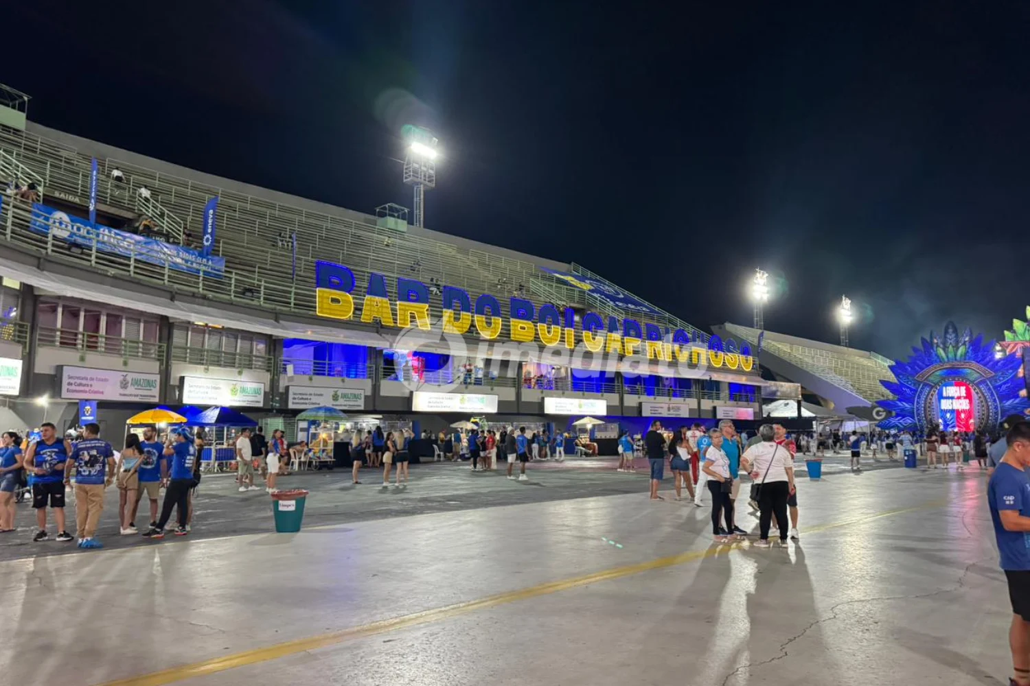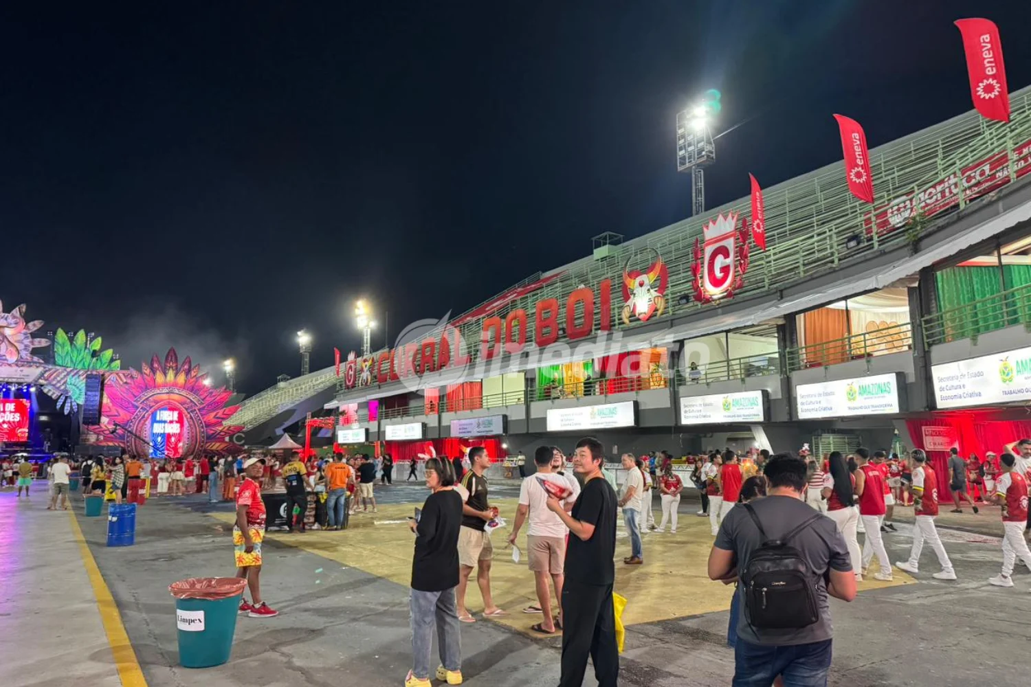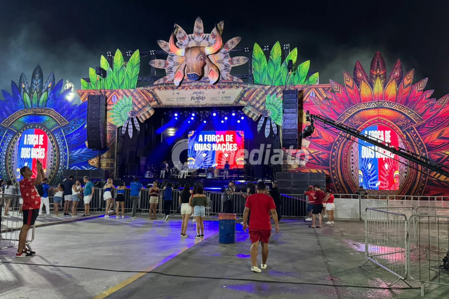 Mesmo antes do início oficial, previsto para as 21h, o Sambódromo já registrava intensa movimentação. Torcedores vestidos de vermelho e branco, em apoio ao Garantido, e de azul e branco, representando o Caprichoso, ocupavam lados opostos do espaço, repetindo a tradicional divisão que ocorre no Bumbódromo, em Parintins.