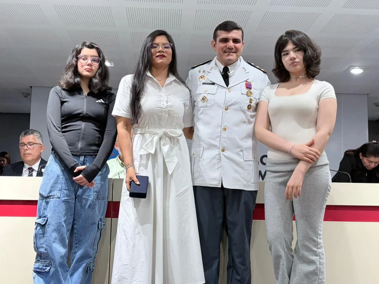 Durante a solenidade, o coronel esteve acompanhado de sua esposa Wanessa e de suas filhas Giovana e Fernanda, compartilhando o momento de conquista em família, o que trouxe ainda mais significado à homenagem.