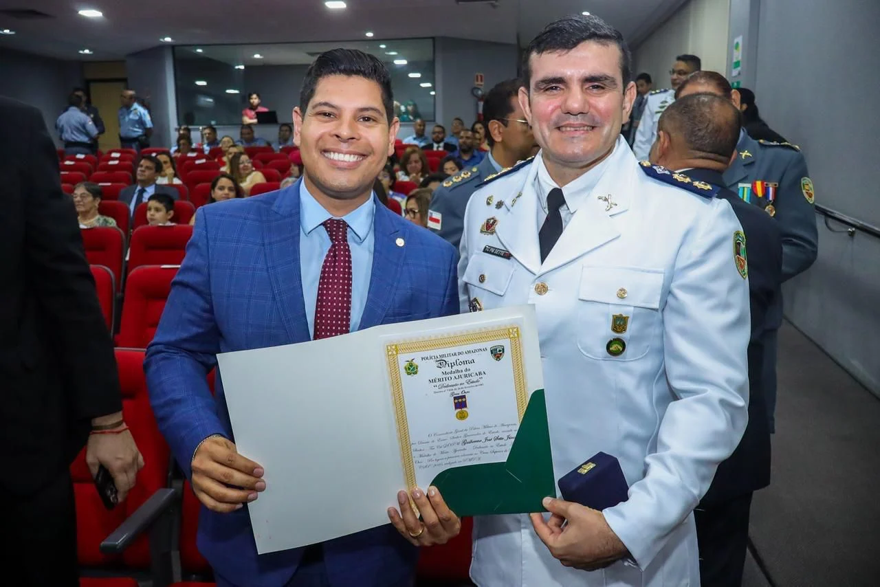 O coronel Sette foi condecorado com a Medalha Ajuricaba Grau Ouro, a mais alta distinção concedida pela Polícia Militar do Amazonas (PMAM), após alcançar o primeiro lugar no Curso de Polícia da corporação. A honraria reforça o reconhecimento ao desempenho exemplar, disciplina e compromisso com a segurança pública no estado.
