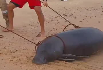 Peixe-boi é encontrado morto na praia do Chapéu Virado, em Mosqueiro