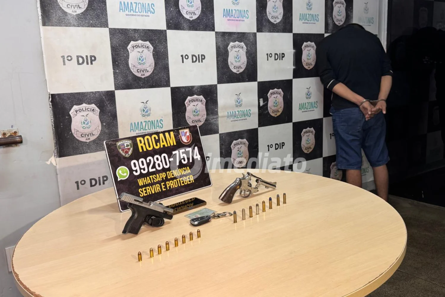 Na ação, foram apreendidas duas armas de fogo, uma pistola calibre .380 e um revólver calibre .38, além de diversas munições intactas. O veículo utilizado pelos suspeitos também foi apreendido e, segundo a polícia, seria alugado, possivelmente com o objetivo de facilitar a prática do crime e dificultar a identificação dos autores.