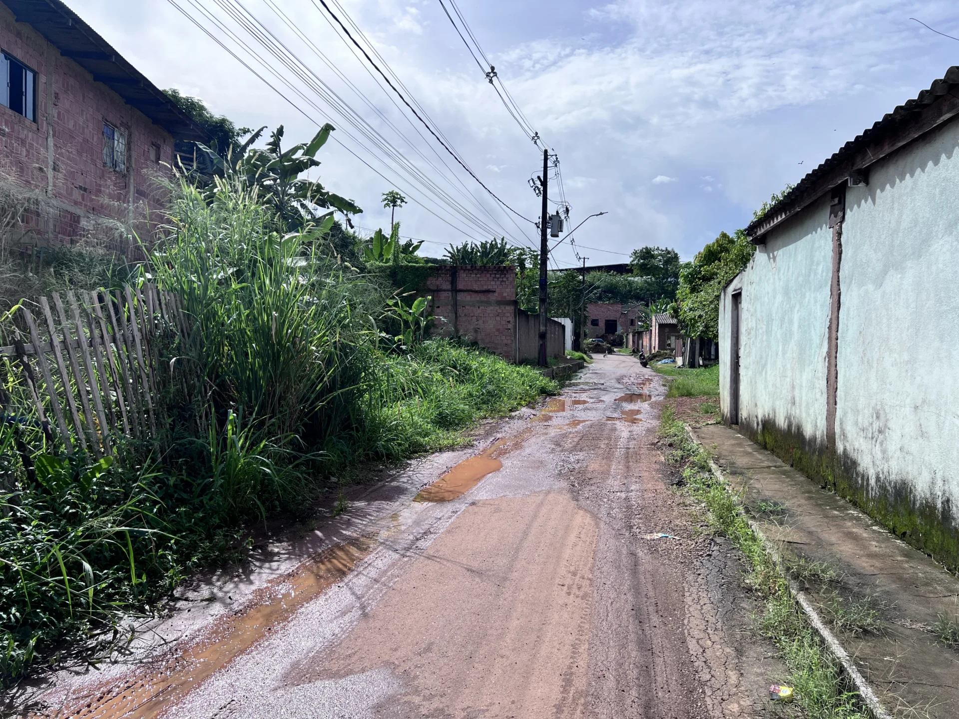 A comunidade também enfrenta a falta de saneamento básico e o escoamento inadequado da água, o que contribui para alagamentos e agrava a situação durante o período chuvoso.